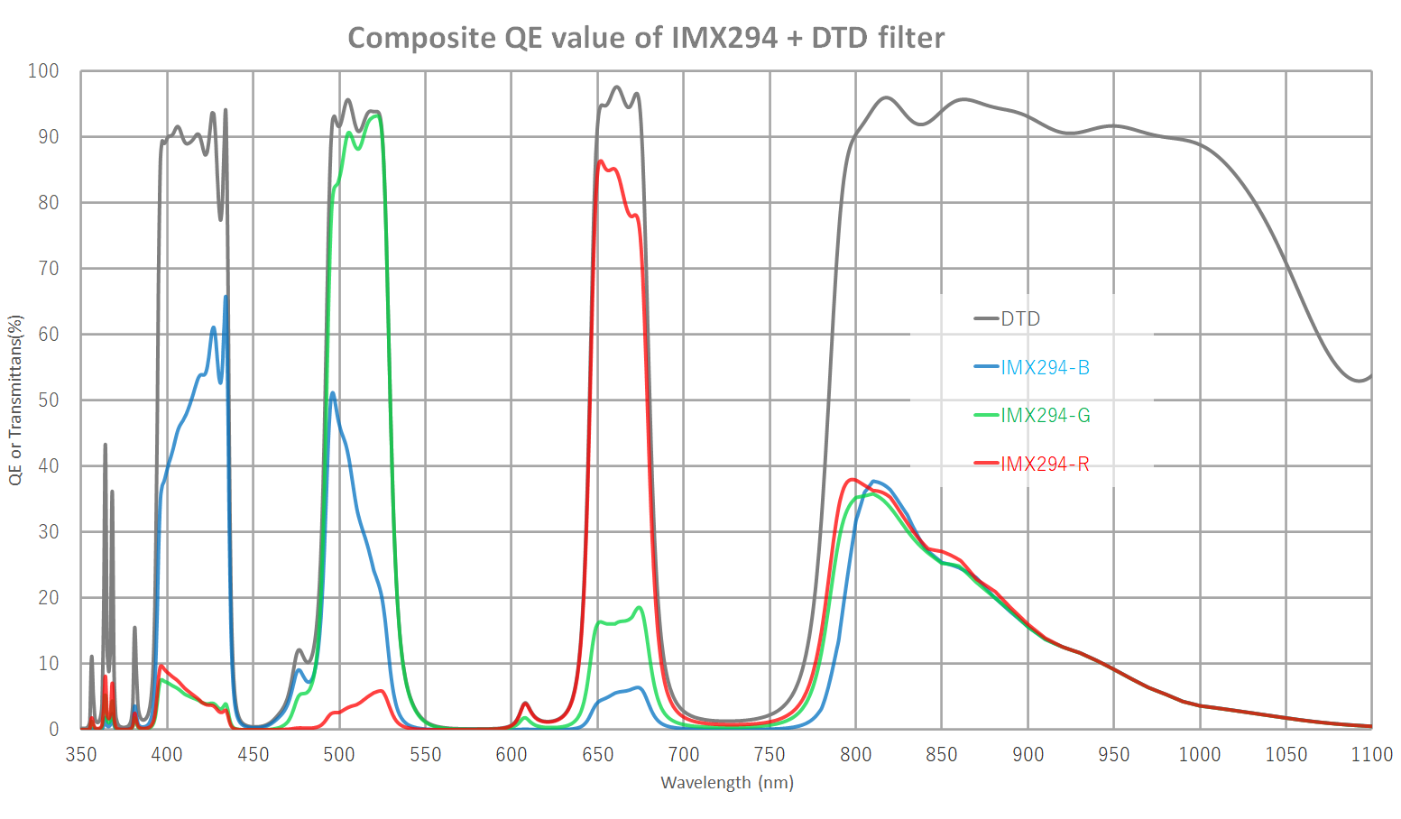 The visible range characteristics of the DTD allow for effective use of the RGB range of the image sensor.