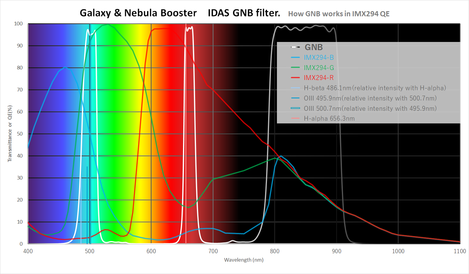 The GNB filter will enhance the colorfulness of galaxies when used with a conventional sensor (such as IMX294).